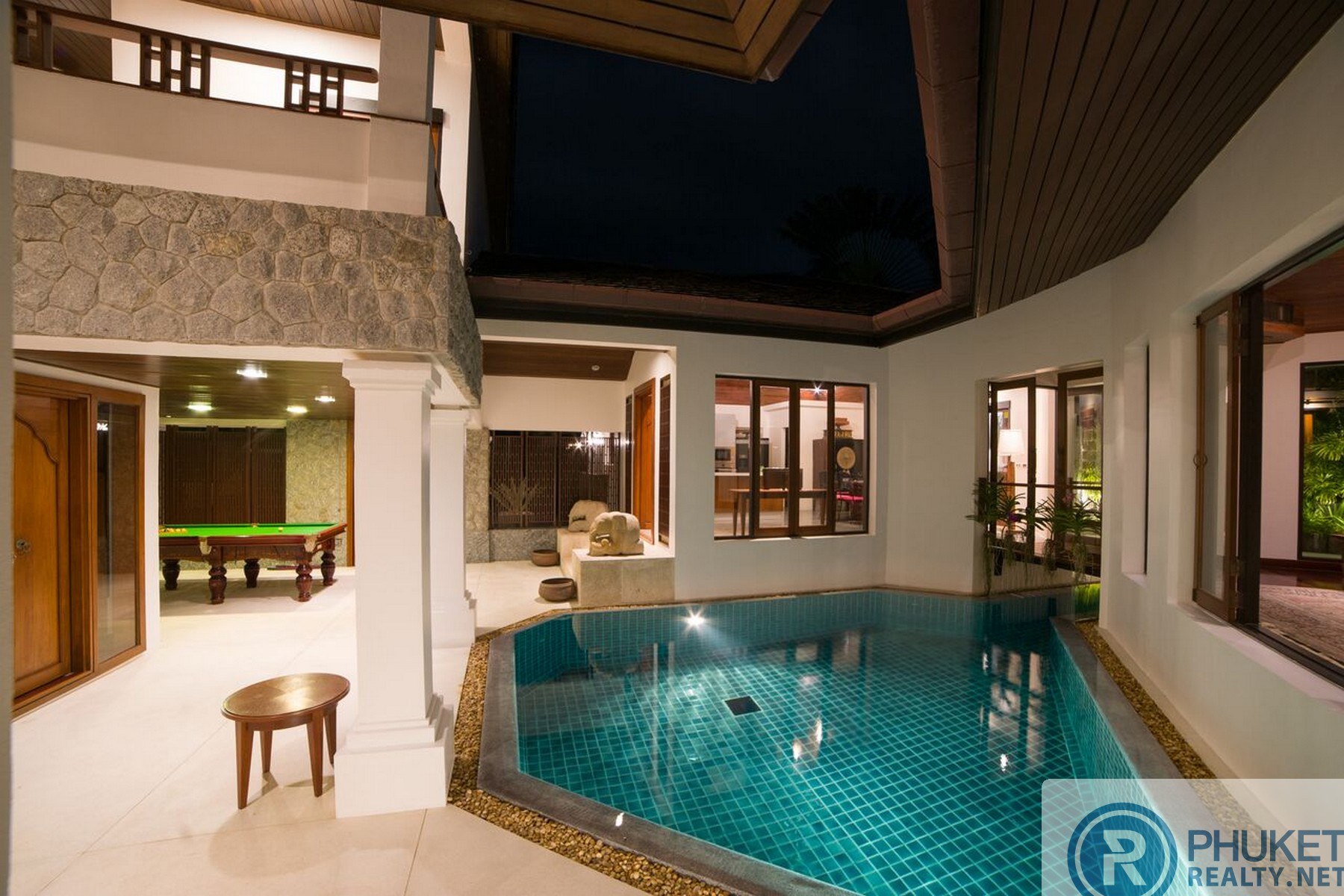 Hidden in a small alley off the Surin main road lies Surin  a residence composed of 12 villas built around a lovely lake. The peaceful atmosphere invites you to chill out and relax. The villa is composed of 5 bedrooms with en-suite bathrooms. It has 2 dining areas, one near the kitchen, the other, al fresco, right beside the lake, a perfect place to enjoy a barbecue. For you to enjoy and have fun, you have a swimming pool, pool table, table tennis, dart board, board gamesThe spaceThe villa is right beside a lake. This water feature gives it a feeling of peace, tranquility and beauty. Additional to that, to the contrary of many private villas that require the rental of a car or a motorbike to move around and be able to do things, the location of Surin Lake Villa is such that you can do all your shopping, go to the beach, to restaurants, to massages, and other various shops, simply by walking. While in the villa, for your entertainment, you will have at your disposal, internet TV (Netflix), Billiard Table, Dart Game, Table Tennis, many Board Games available on request.Other things to noteWe will provide daily housekeeping. The linen will be changed every three days, or on demand in case of problem. If you wish your towels to be replaced, just drop them in the laundry basket. Every bathroom has one. Electricity is free up to a daily charge of THB 500, which is what we consumed when we lived in the villa. Anything above that amount will be charged to the guest. THB 500 per day allows for a normal usage of electricity, and should encourage our guests not to waste energy.