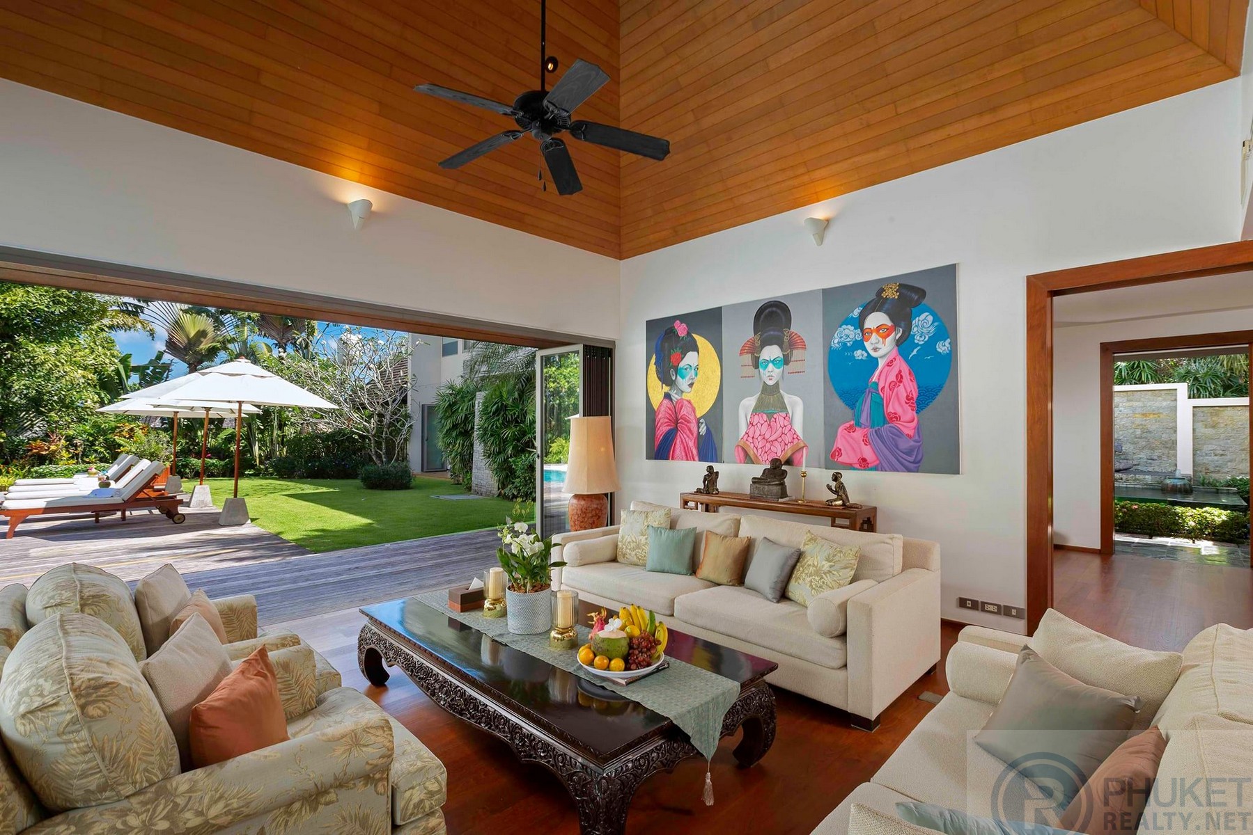 One of the finest private Estates in Phuket, many long term resident owners. Very secure and well managed with avenues of Traveller and Foxtail palms, and well manicured surroundings. Management: The Knight Frank Estate management has a permanent office here, and are on hand to assist owners.The Pro Services Villa manager will also be available for consultation and assistance.There is permanent Guard system and gatehouse, and CCTV camera surveillance. This Luxury Villa has many improvements on the original design or similar Villas in Layan Estate. Extra parking areas, and entry water features. Larger garage, veranda at Master, Garden features, Asian kitchen, Marble pool, Kitchen enlarged and opened up to dining out etc.The layout makes the perfect family home,( good access to the main International schools), South Bypass or North to Thalang, BIS/UWC. Cherngtalay/ Laguna village10 minutes away, and Bangtao.The unique Naga Concept Design is an Internationally recognized success for Asian living.The main Dining area (seats 10), and the Lounge open up completely to the garden & pool. TV Room has large TV, International TV, Sports channels, Films, and TV series. Fans and aircon in all rooms, Beautiful teak floors and Asian decor touches.A Sonos sound system operated by iPhone etc. covers all these areas. State-of-the-art modern kitchen and attached BBQ area Three fishponds with fountains add to a cool positive Feng-Shui ambience. … Internet and Wi-Fi in all areas.Local Amenities /Distance: - 7/10 Mins to Laguna Village /Cherngtalay, Villa Market & Tops Supermarket • 5 of the most popular beaches (nearest 10 mins), the famous Bluetree nearby 500 m., and a waterpark. • 5 top golf courses…(nearest 10 mins). • 20 minutes from the international Airport • 20 minutes from 2 International standard Hospitals • 25 minutes from the British International School • 10 of the best Island restaurants…10 mins • 30 mins to Boat Marinas, on East Coast. Equipment:Kitchen: 2 Fridges + Freezer, Dishwasher+ MicrowaveCoffee Machine NespressoToaster, Blender, Rice CookerBBQ: Large 4 gas BeefeaterWine Room Store: Wine Cooler, 3rd fridgeLaundry: Washing Machine + Tumble Dryer