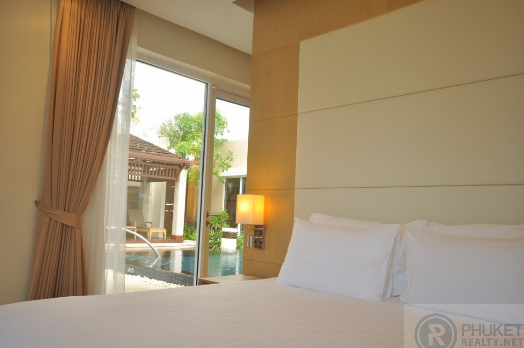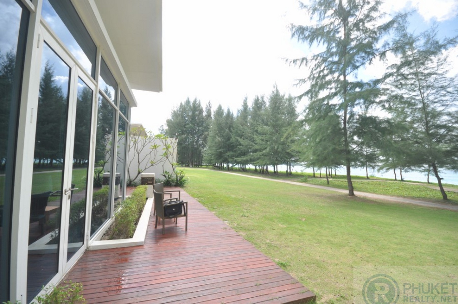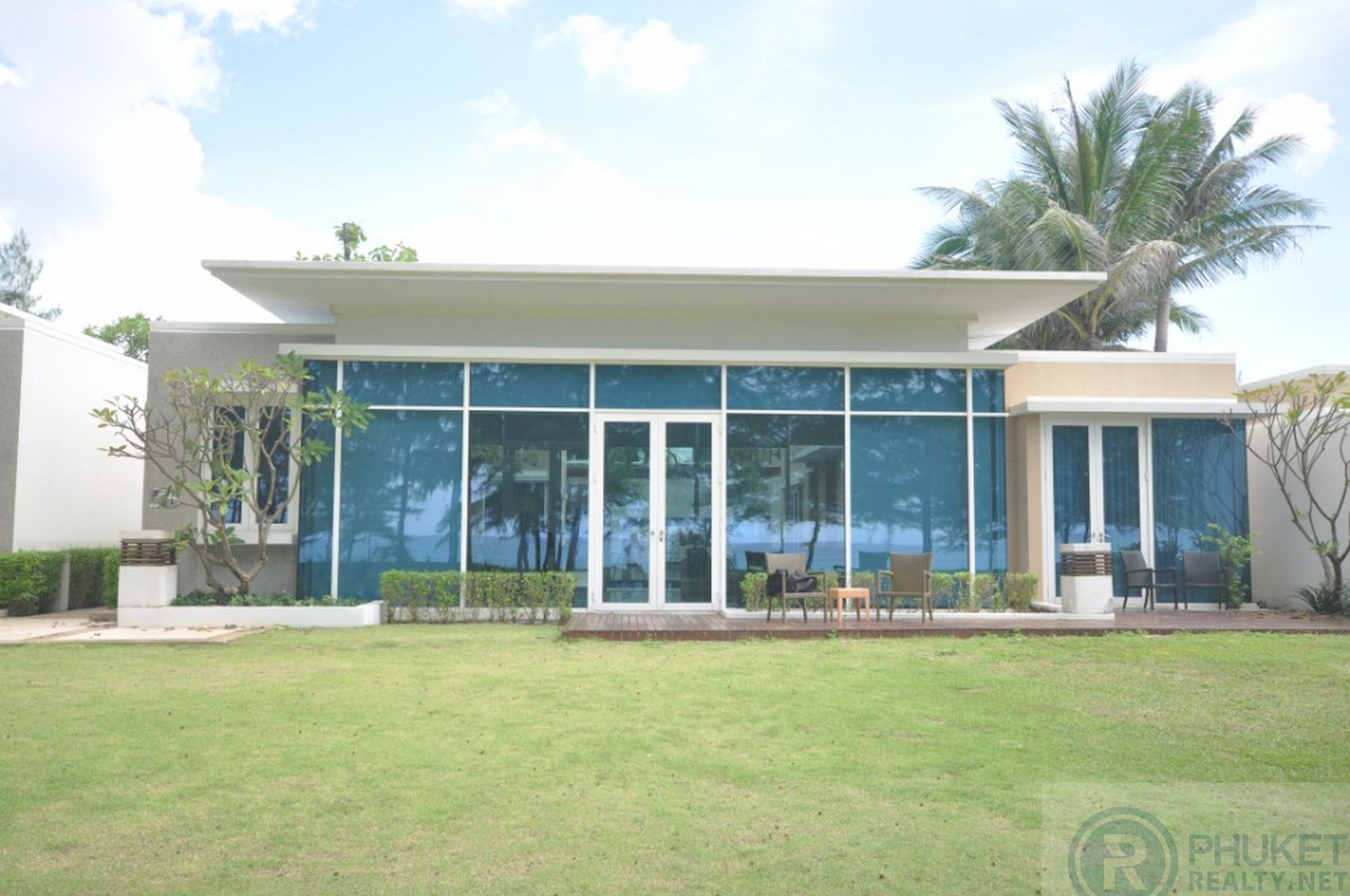 Three Bedroom Resort Pool Villa on the Beach / 39,000,000 THB3-bedroom, one storey, luxury, contemporary styled beach side, resort pool villa. Very private design with a central pool in the internal walled courtyard with bedrooms along the outer edges and a living room, dining area and kitchen along the sea facing side. The master bedroom also has a direct beach and sea facing view.Modern courtyard design. High ceilings, lots of glass frontage for a light and airy feel. Master bedroom has a spa type bathroom area with separate walk through wardrobe, twin vanity sinks, large jacuzzi style bath and separate shower room.The second and third bathrooms also have their own en suite bathrooms, the second also with a private bath tub.The private swimming pool has a separate Jacuzzi tub at one end.The villa faces out to the sands of Mai Khao beach. There is a 40m wide strip of sandy and grass foreshore between the villa and beach with mature casuarina trees providing shade and a wonderful flat and safe play area for children. Mai Khao beach is one of Phuket's most pristine beaches with no beach chairs, just miles of fine golden sand.The property is situated within a managed 4-star resort with its own gym, restaurant, common area swimming pool and even access to an onsite water park.Property OverviewLocation: Mai KhaoRegion:North-WestBeach:40mGolf Course:5kmShopping:4kmMarina:9kmInternational School:10kmAirport:6kmView from Property:Sea, GardenInterior Details