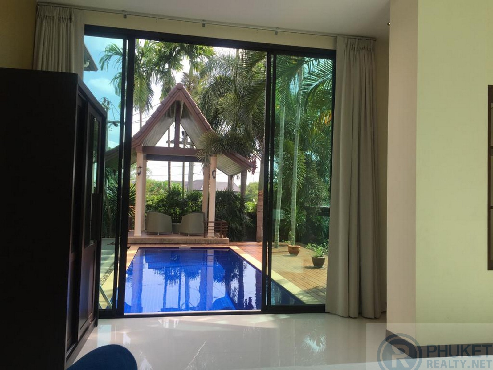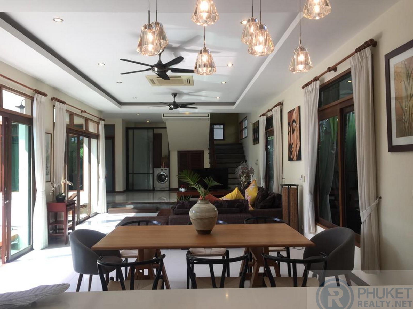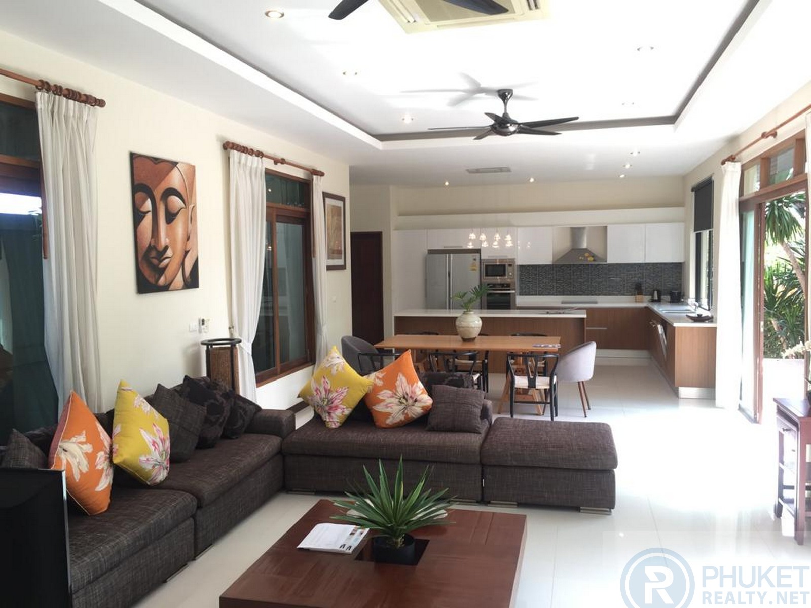 This Luxury Pool Villa is located in a popular Bang Tao and Layan beach area. It’s within 2 minutes driving distance to Boat Avenue and Villa Market shopping plaza and many popular restaurants. The living room villa is an opened style with easy access to the swimming pool. The villa has 4 bedroom 4 bathroom.