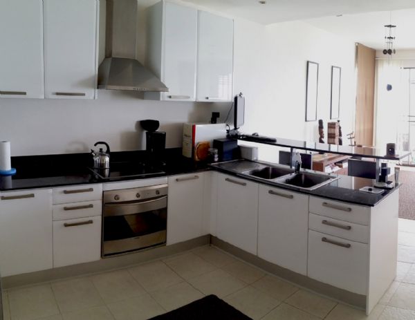 The open plan living and dining areas overlook the pool and ocean views, with fully fitted Western kitchen. The bedrooms have built-in furniture, and both bathrooms are fitted with top quality ceramics and sanitary ware.