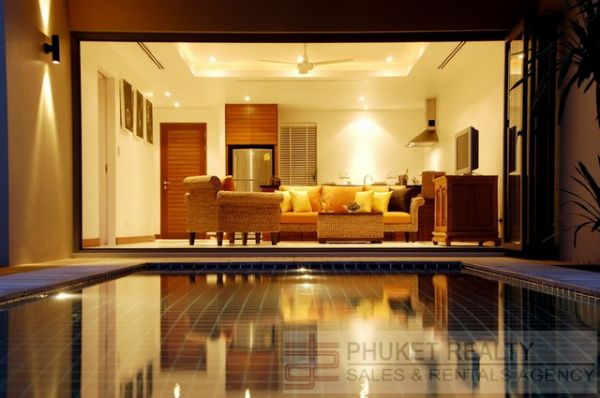 A stunning two bedroom villa with private pool, walking distance to Bangtao Beach. The property is within a secure estate of pool villas, the open living and dining areas overlook the swimming pool and tropical gardens. The villa has a fully fitted and equipped Western kitchen. The extra large bedrooms with King sized beds have ensuite bathrooms and outdoor shower. Upstairs is a private sala and lounge area where dinners can be served or enjoy the sunsets with cocktails among friends. Perfect for long term rentals, with a large amount of storage, private car parking garage, fully refurbished and private. Close to schools, walking distance to shopping areas.