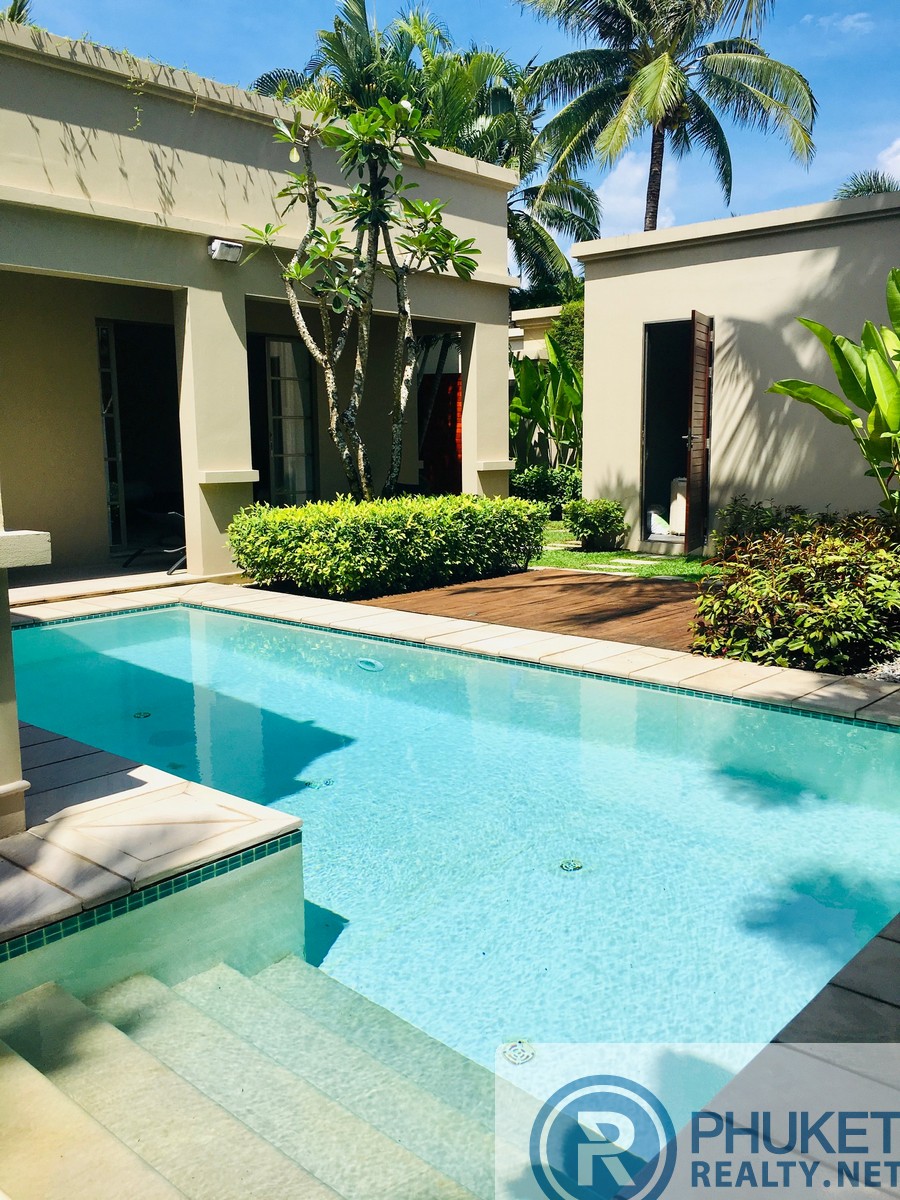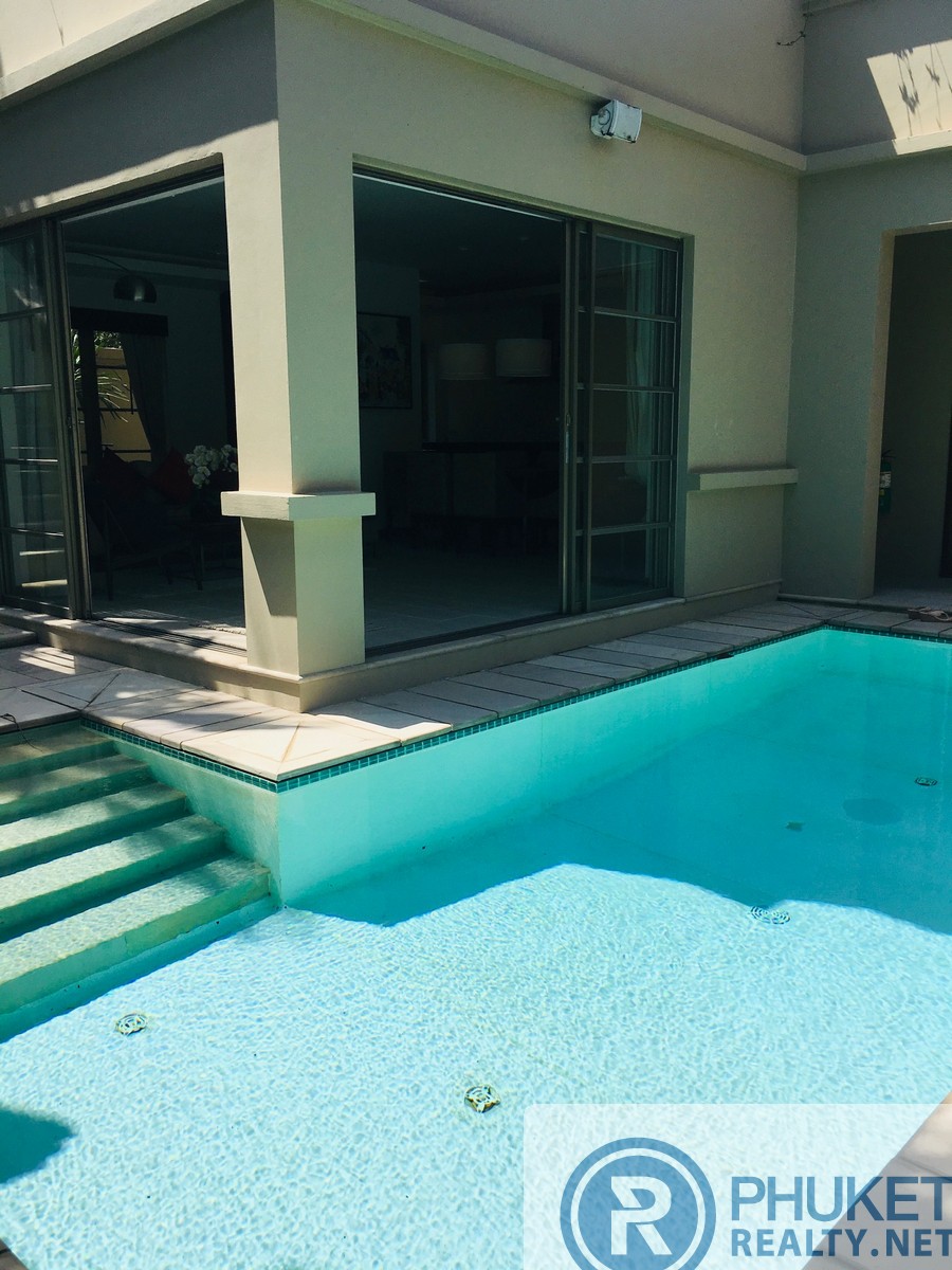 A stunning two bedroom villa with private pool, walking distance to Bangtao Beach. The property is within a secure estate of pool villas 24 hour security, the open living and dining areas overlook the swimming pool and tropical gardens. The villa has a fully fitted and equipped Western kitchen. The extra large bedrooms with King sized beds have ensuite bathrooms and outdoor shower.Separate Laundry room with washing machine and dryer. Upstairs is a private sala and lounge area where dinners can be served or enjoy the sunsets with cocktails among friends. Perfect for long term rentals, with a large amount of storage, private car parking garage, fully refurbished and private. Close to schools, walking distance to shopping areas.