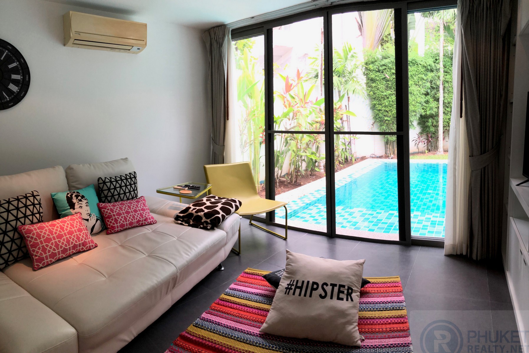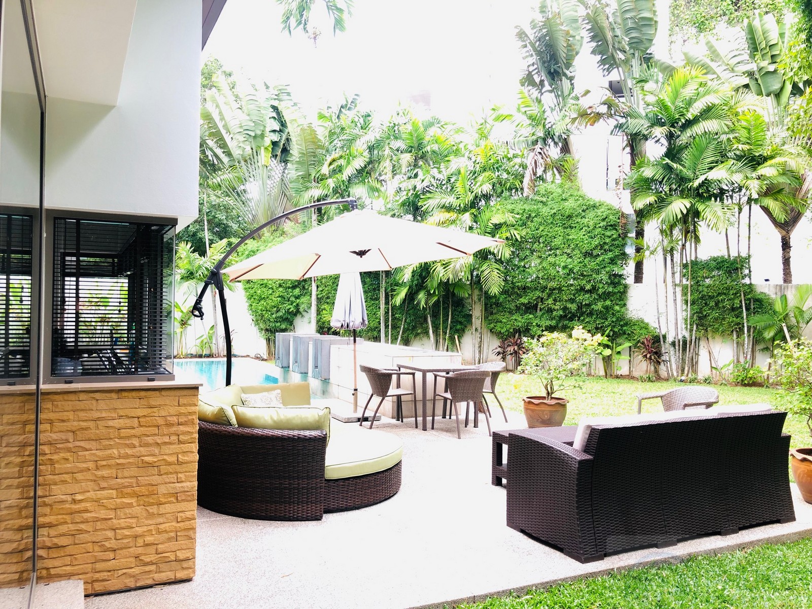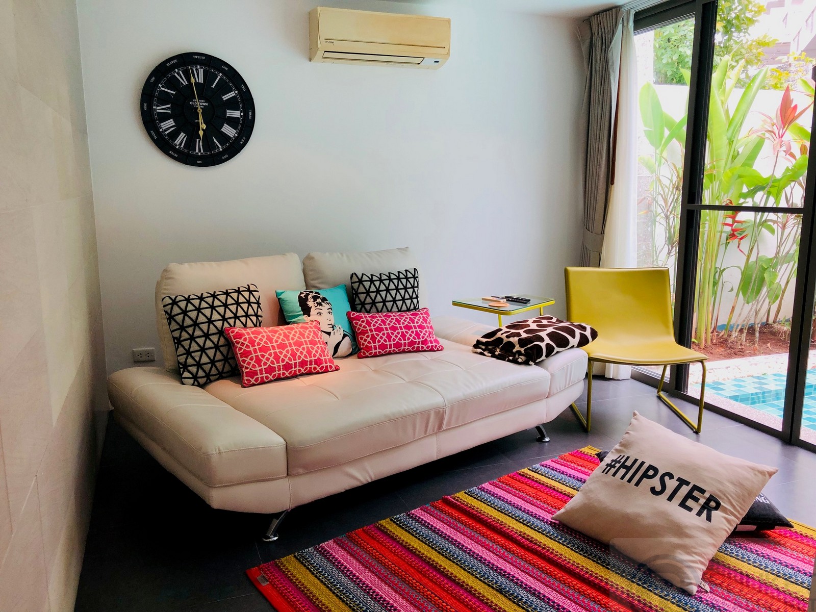 Modern lines combining indoor and outdoor living with privacy and seclusion in a wonderful tropical garden setting. Externally just has just built a solid 2.2 metre wall all the way around the outside (to shield the garden from the access road and hotel cars).