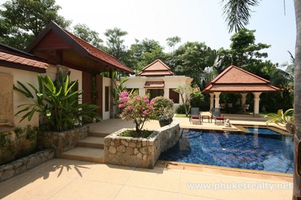 This luxurious private pool villa is situated close to Bangtao Beach on the west coast of Phuket near the entrance to the popular Laguna resort complex. The villa is on over 1000 sqm land plot, very well maintained and fully furnished. The villa features a separate lounge, dining room, open western kitchen and maids' quarters. All rooms open on to the pool, the main focus of the home via concertina glass and hardwood doors and beautifully landscaped gardens surrounded by high walls for privacy. The guest villa or 4th bedroom, is very well appointed with a sitting area and ensuite bathroom but fully self contained in a separate villa.
