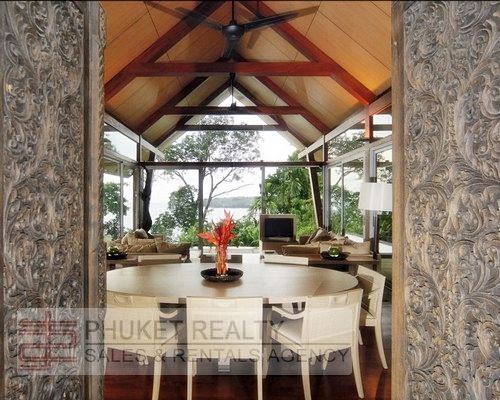 The Main living area combines indoor and outdoor living areas set adjacent to the two pools with floor to ceiling windows. The Living/Dining room offers a large A/C lounge zone and indoor dining setting. Thai doors open to a granite day bar and onto a western kitchen with a separate Asian Chefs kitchen and maids quarters.