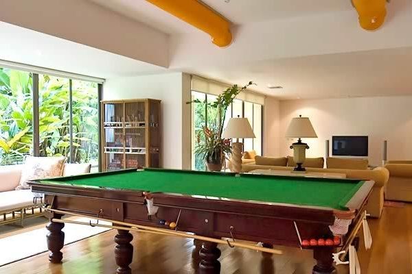 The three additional guest rooms (all with en-suite bathrooms) are also situated on this lower floor, allowing guests to walk out of their bedrooms directly to the poolside. Each of these rooms sleeps 2 adults in a King-sized bed. Only a short distance away is the children’s dormitory (sleeps 8 children in 4 bunk beds)and the Games Room equipped with cable television and snooker table.