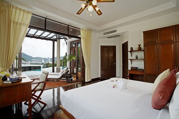 The Villa comprises of 5 master bedrooms, each with magnificent views over Patong Bay and beyond. The master lounge, complete with stereo and DVD, sits at pool level providing BOSE poolside sounds to accompany the fantastic views. An open plan chef's kitchen services both the inside and outside dining areas. The downstairs entertainment room houses a 60 inch plasma flatscreen TV, complete with DVD, stereo and Sony Playstation II as well as an American pool table, making it a great party room or that rainy day retreat.