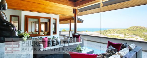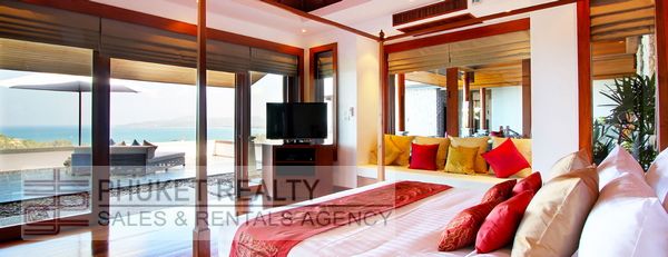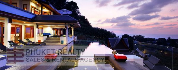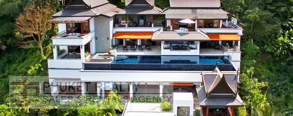 Grand luxury villa nestling on a private and secured hillside on the west coast of Phuket, an elegant style in a flourish of traditional Thai roofs. From a commanding height of 80 meters, Villa gives you the breath taking panorama of the Andaman Sea to the west, the towering 'Gothic' dome-like mountains of Phang Nga to the north and the lush green valley that reaches out toward them. The play of terraces and salas throughout the three levels of the Villa ensures that they capture the breeze from the ocean in all seasons, as guests lie back and watch the distant horizon just beyond the crystal clear water of the eighteen meter Infinity pool.