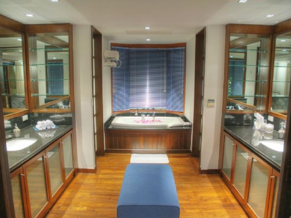 The Upper Level acts as the villa’s entertainment and living areas. This level of Villa features Phuket’s best collection of Asian themed antiques and paintings. The Western-style kitchen, with fixtures by Gaggenau, feature all the desirable conveniences found in the best European homes. A large, elegant dining room set conveniently nearby can comfortably seat ten guests. Privately hidden, you will find an elegant and secluded bedroom featuring a luxurious balcony overlooking the sea.