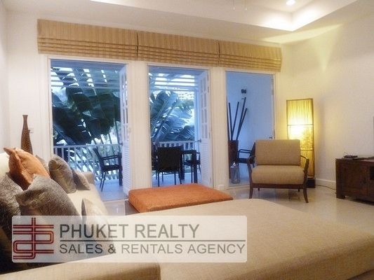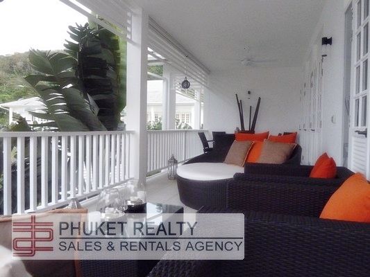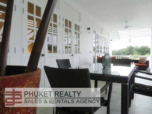 This lovely two bedroom apartment with 87 sqm internal area and 30 sqm of balcony is located at Layan Beach on the North West coast of Phuket, nestling on the sloping hillside of the Layan headland, with easy access to Bang Tao Bay with its pristine and untouched stretches of beaches. Near to the popular Laguna Phuket Golf Course. This low-rise collection of residential apartments was designed in a tropical plantation style. The property artfully evokes images of bygone, more tranquil times. Six beautiful colonial buildings cluster around a central, spring-fed lake and the impressive swimming pool with its waterfall cascade. Indeed, the swimming pool is a main focus of the property - it is set among exotic, lavishly landscaped gardens, rich with bird of paradise flowers, spider lilies and perfumed frangipani trees. Moreover, the beach is only minutes away. It offers a relaxing and comfortable living room accented with indigenous silks, cottons and wood; a modern and fully equipped Western kitchen, two full sized bedrooms one with ensuite bathroom and one shared bathroom. With a careful eye on design, French doors open up from the bedroom onto the spacious veranda. The apartment’s oversized private balconies were specially designed to maximize outdoor living and are perfect for lounging, dining and entertaining, whilst enhancing a sense of being at one with nature and the exotic surroundings. Multiple swinging French doors open up to the veranda offering scenic views of the lake, pool and mountains.