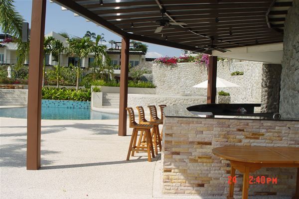Superb, spacious bedroom suites with en-suite, luxurious bathrooms finished in marble and granite with a Jacuzzi tub and separate shower in Master bathroom. Extensive solid teakwood wardrobes and built-in furniture. The Master Bedroom suite has a large 20 sqm (5 x 4) private terrace enabling superb views over the gardens and pools and across the valley to the hills and ocean beyond. The other large bedroom suites have their own private balconies, giving this luxury Phuket apartments excellent views.