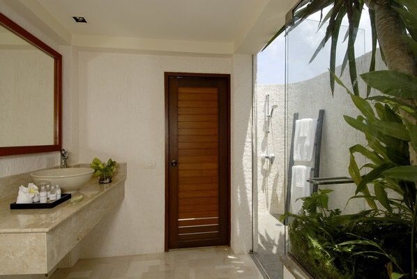 This stunning tropical-modern villa combines the simple elegance of Thai and Balinese design. Be captivated the moment you walk through the Balinese wooden doors, over the koy fish pond and enter Villa Thai Bali. Allow your gaze to wander over the luxuriously appointed living area out towards the sparkling private swimming pool, enveloped by lush tropical greenery. The large living space extends seamlessly outside to an open terrace perfect for cocktails parties and intimate dining. The outdoors are surrounded by lush tropical gardens, full of colour, fragrance and beauty. You cannot help but feel relaxed in these surroundings that promote pure peace, harmony and tranquility.