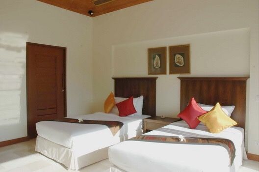 Thai Bali Villa offers three luxurious, oversized bedroom suites with private ensuite bathrooms. The Main bedroom has a private bathtub and the guest suites all enjoy their own outdoor rain-showers. The bedrooms and living areas all have high, vaulted timber ceilings, concealed air-conditioning, ceiling fans, granite flooring and mood lighting throughout. There is a fully equipped Western kitchen, Smart TV with online interactive media, Satellite Box, DVD player and Internet Wi-Fi through out the villa. The villa lies within a small secured estate with electronic gate access, private undercover carpark, maid's quarter and BBQ.