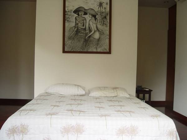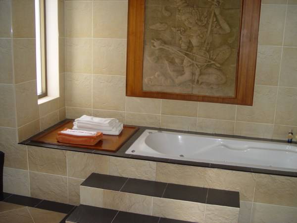 There are two bedrooms in the main villa, both with ensuited bathrooms. One has a single bed and the second bedroom has a king size bed. The second bedroom is large and spacious, matching the expectations of a Master bedroom. A Grand Bedroom is in a separated suite next to the main building. The Grand Bedroom has direct access to the pool and a spacious ensuited bathroom with its own bathtub and shower.