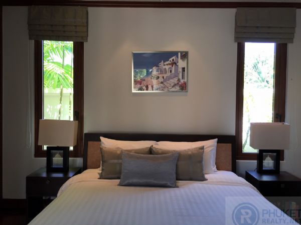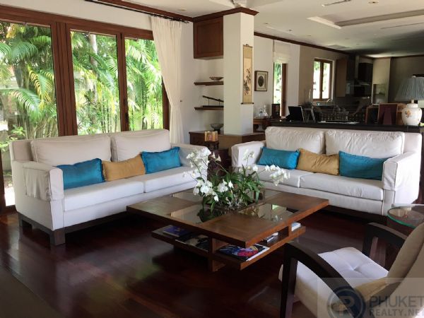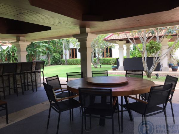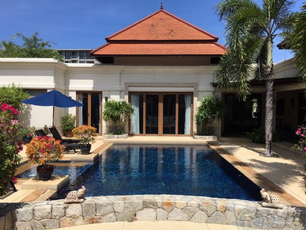 Bang Tao Villa is on a private, secure and beautifully maintained estate of similar, high quality villas. Enter the villa through a set of grand carved wooden doors, close them behind you and discover your own luxurious and totally private haven. All of the villas in the estate are single storey and so, with the wall surrounding the garden, you have complete privacy. The Villa is designed in the Balinese/Thai style with tasteful use of wood and large pitched roofs balanced by contemporary modern interior design. The buildings are arranged in an L-shape around the pool with the garden beyond. The main living, dining and bedrooms all have hardwood concertina doors which can be drawn back to exacerbate the airy and open feeling. As darkness descends, the mood changes with wonderful, subtle and controllable lighting coming on automatically - giving the villa a relaxing ambience. Despite having access to over 25 restaurants within 5 minutes, our guests report that they often feel like just cracking open a drink and settling in for the night. The Villa also has the benefit of surround sound in the garden, to further enhance the relaxing atmosphere.