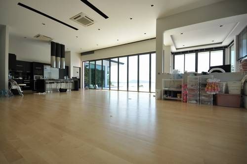 Large custom designed handmade steel double doors give the clear message that this property is something special. The inside of the property is the first surprise. There is a truly enormous 15m x 10m living area with open plan kitchen with 4m high ceilings. To the front right hand side is a separate dining area on a raised platform which serves equally well as TV den. One's eye however is naturally drawn forwards to the panoramic view of the bay which is across the infinity edge pool which runs across the front of the villa. To the left is the master bedroom with large ensuite bathroom and walk in his and her closets.
