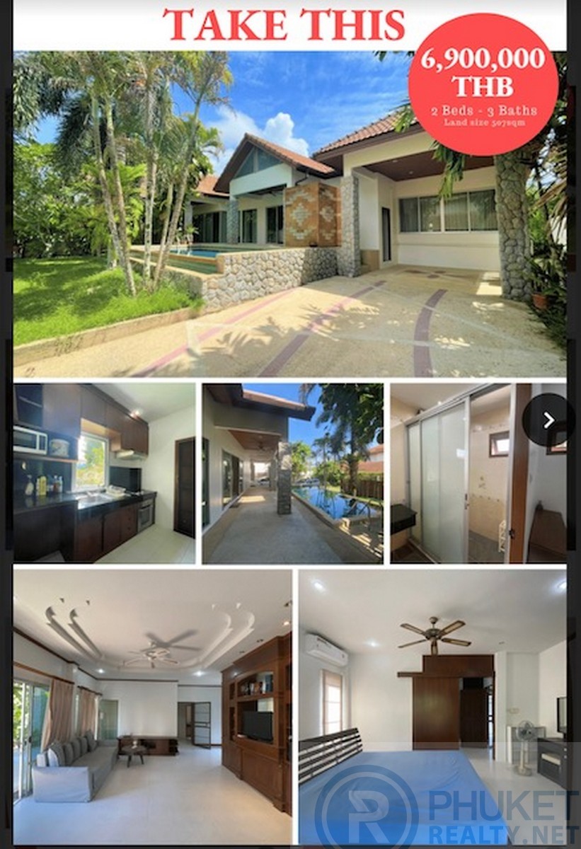 This Pool villa with two bedroom 3 bathroom near Laguna area. The house had living room, Private pool, Garden, Kitchen, Terrace. As each bedroom had separate bathroom one one store room, an option to extend another bedroom and renovate.