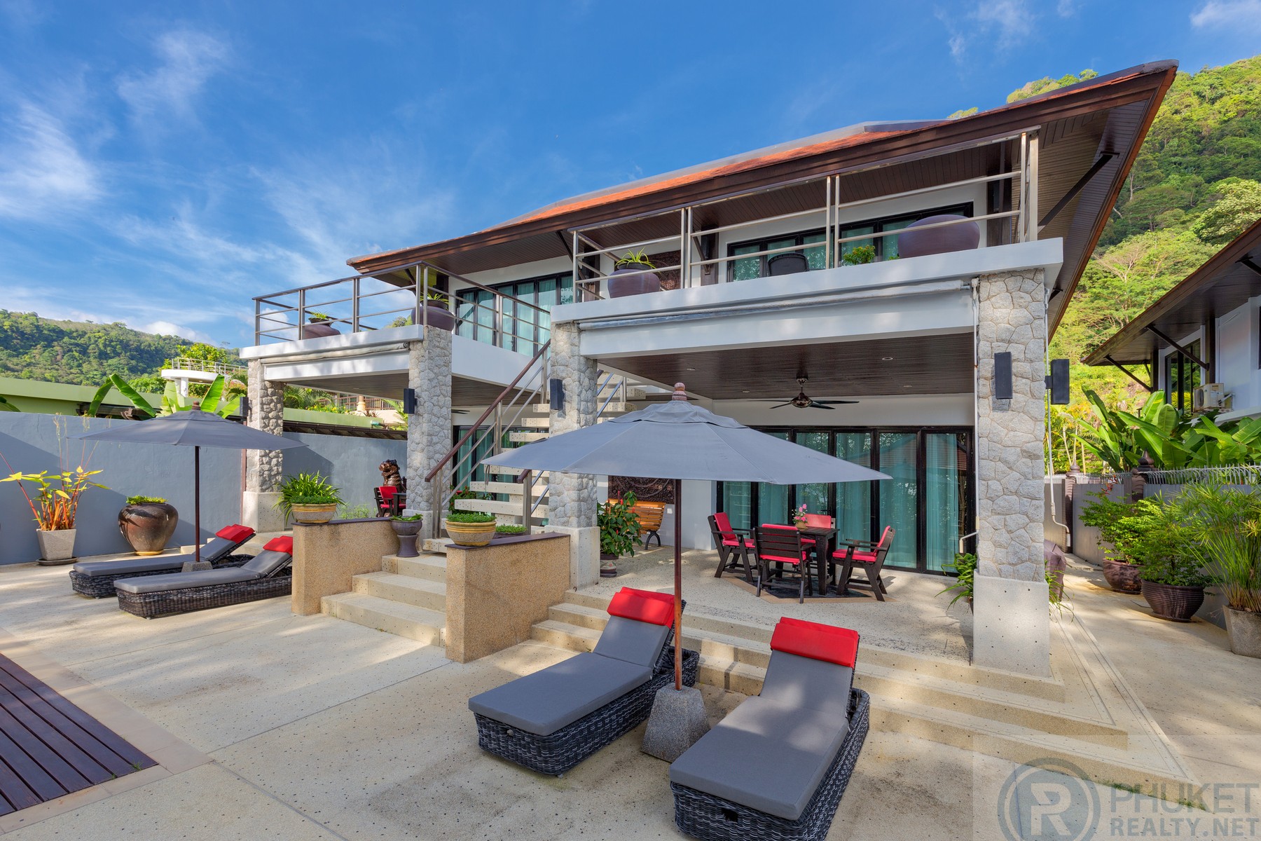 Kalim View Villa is a unique investment opportunity consisting of two adjacent private villas, one with five bedrooms the other with six. This makes Kalim View Villa ideal for large groups as both villas can be rented together thereby offering a total of eleven bedrooms, two fully equipped kitchens, two swimming pools and larger living space. Guests can freely circulate from one villa to another by connecting outdoor living areas.This provides excellent flexibility when dealing with larger rental groups.Each villa offers a large terrace with dining and living areas, and a private swimming pool allowing you to enjoy an unforgettable outdoor experience. Both properties are to be sold together.Add to this, the amazing location. Kalim View Villa is located on a hillside overlooking Patong Bay, only five minutes’ drive from Patong Beach's entertainment & shopping areas. The 6-bedroom villa offers two large master bedrooms with full ensuite bathrooms and two guest bedrooms on the upper level. There are two further bedrooms on the ground floor level. All bedrooms include a television with DVD and CD player and safety deposit boxes. Both master bedrooms share a large balcony overlooking the Andaman Sea. The villa offers two large dining areas - one indoor and one outdoor - allowing you to choose the best setting for an enjoyable meal with friends and family. A fully equipped kitchen is available should you wish to cook your own meals. A BBQ is also available on the outdoor terrace.The living room with its large flat screen television and home-theatre system is the perfect place to relax while watching your favorite movie from one of the many DVDs available.The outdoor terrace is the best place to sunbathe and sip your favorite drink while you unwind in the private swimming pool.The villa also has CCTV security cameras outside as well as a gated private parking that can fit 2 cars and several motorbikes. The 5-bedroom villa offers one Master bedroom and four large guest bedrooms with king-size beds and full ensuite bathrooms. The Master bedroom includes a cable television and has a balcony overlooking the Andaman Sea. All bedrooms have safety deposit boxes.The villa offers two large dining areas - one indoor and one outdoor - allowing you to choose the best setting for an enjoyable meal with friends and family. A fully equipped kitchen is located on the main floor (2nd floor) in addition to a kitchenette on the ground floor, should you wish to cook. A BBQ is available on the outdoor terrace.The living room with its large flat screen television and home-theatre system is the perfect place to relax while watching your favorite movie from one of the many DVDs available. The living room also includes a billiard table.The villas both have sufficient parking for at least four cars each and several motorbikes. Indeed, the rear car parking area provide ample space to further expand the villas if ever required. The villa area is protected by CCTV. If you are looking for a flexible and rewarding investment opportunity, yet you want to enjoy the fun and action Patong has to offer, Kalim View Villa is for you. Perched 60 meters above sea level overlooking the bay of Kalim and surrounded by mountains on the rear side, the villa offers the peace and tranquility rental guests would look for as a holiday in Phuket.