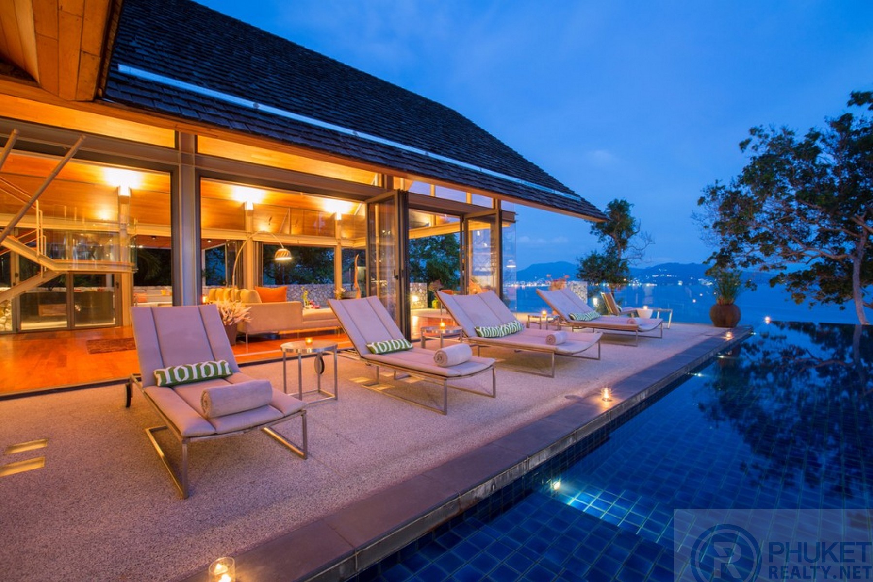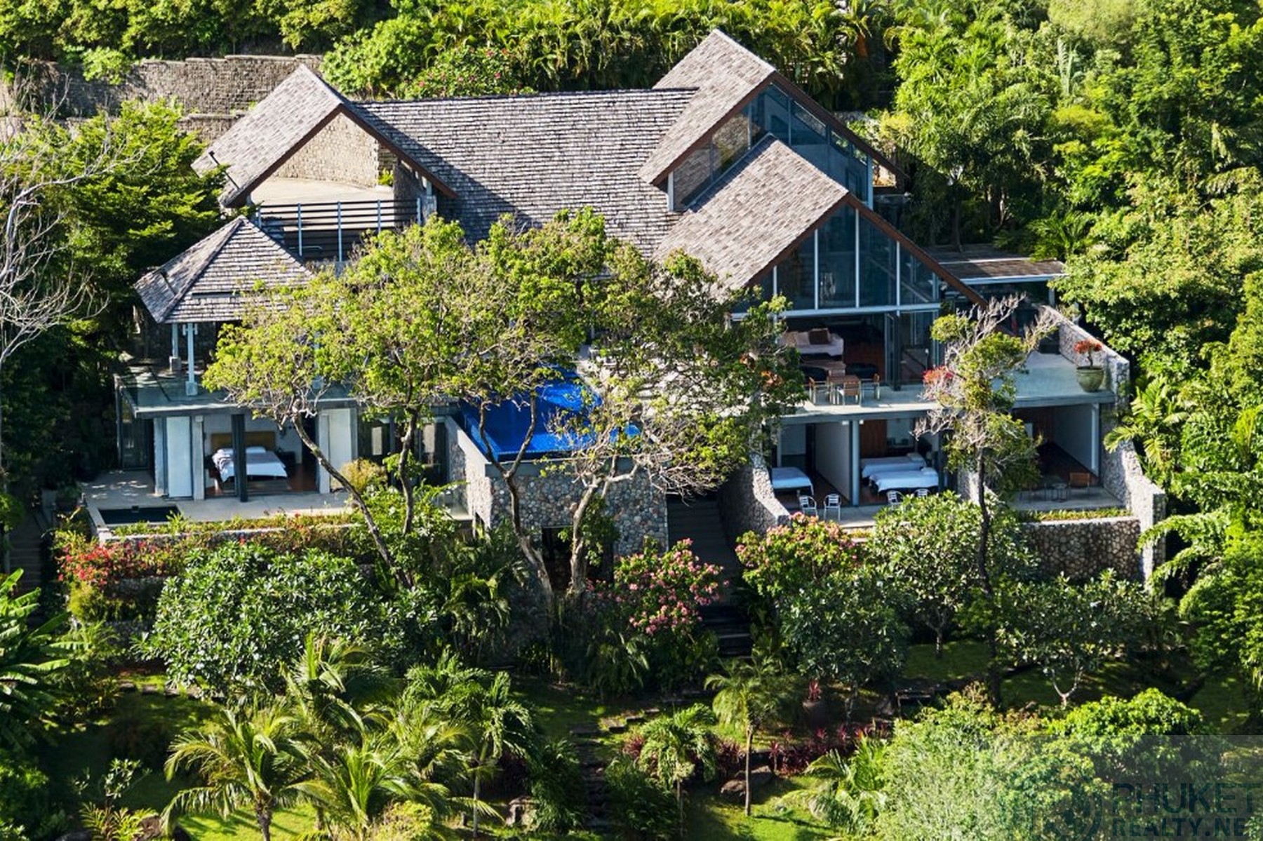 It is direct Oceanfront, has a 4,000 Sq.m garden with lawns and access to the ocean in addition to the 1,000+ Sq.m villa plot. From the villa, you will see sunrise and sunset as well as open ocean, Patong bay and Patong Beach viewsThe villa style is contemporary Asian by architects, Original Vision. With two main levels, integrated design for family livingwith a light and modern feeling inside.It has 6 ocean view bedrooms but can be expanded to 7 or even 8.Currently configured as 4 bedrooms and an ocean view office and large media room and yoga studioThe master bedroom suite has its own outdoor sea view jacuzzi and a second outdoor bathEach bedroom has its own terrace spaceThere are three ensuites, two bedrooms share a bathroom and the 6th bedroom ( now used as the media room, has a bathroom design which will be fitted to a buyers taste on transfer if required ) The living room has 6 m high vaulted golden teak line ceilings and all around floor to ceiling high quality bi fold anodised aluminium doors. Thus the whole area and front of the villa also can be opened up to the fresh air and allow direct terrace access.2nd, lower living area great for TV, Games, children etc.Large open plan ocean view, kitchen and dining roomWet and dry saunasPlenty of sun bed area around the 15m infinity edge swimming poolOutdoor barbecue and dining area large enough for 20 person seatingOutdoor dining / relaxing sala with 270 degree ocean and bay view’sThere are extensive staff quarters at the rear of the villa of over 100 Sq,m . These include a 2nd full western kitchen, staff bedrooms and common area, large laundry. The entire staff quarters access the main villa levels through their own private doorways so keeping guest privacy to a maximum.While there are many wonderful oceanfront villas on the market at any one time in Phuket, this is the only West coast oceanfront villa with a such a large usable garden in front of it, between the ocean and the villa. Over 4,000 Sq.m of combined lawns, trees and oceanfront. Perfect for events, relaxing and children to play.The Samsara estate is wonderfully positioned on its own headland overlooking the open ocean, Patong Bay and Patong Beach. It is private and secure and yet only 7 minutes’ drive to down town Patong and 12 minutes’ drive to Surin Beach.There is direct walking access to Nakalay and Blue Coral Beaches from internal estate pathways. Samsara owners enjoy preferential access and rates at the new 5 Star Naka resort on Blue Coral Beach.The estate has the most complete infrastructure of any Residential only estate in Phuket. It has its own one million litre water storage facility, two generators and fire hydrant system. There is a dedicated management office from which villas and the estate are maintained and rentals can be arranged. This villa has the best location in the estate, the largest and most usable oceanfront garden not only in Samsara but anywhere along the entire west coast. It is a modern, functional and well-maintained villa which is ready to move in immediately but also has the potential to enlarge with an additional two bedrooms if required.Offered at 4.8m USD with Thai Bath price adjusting to match the USD price
