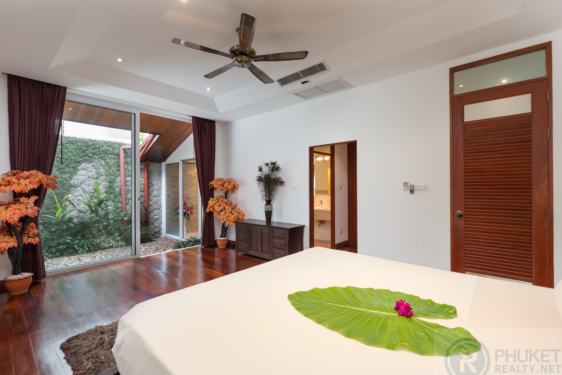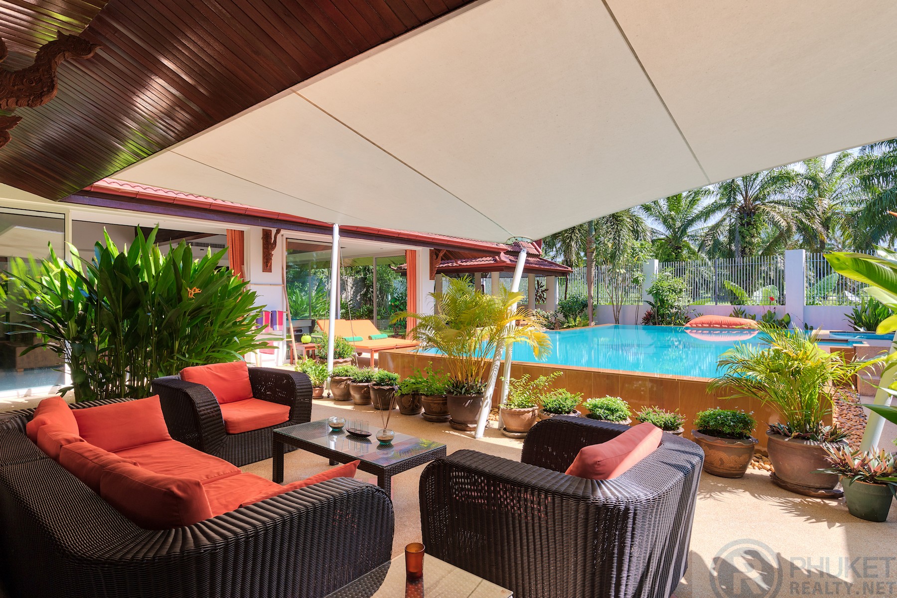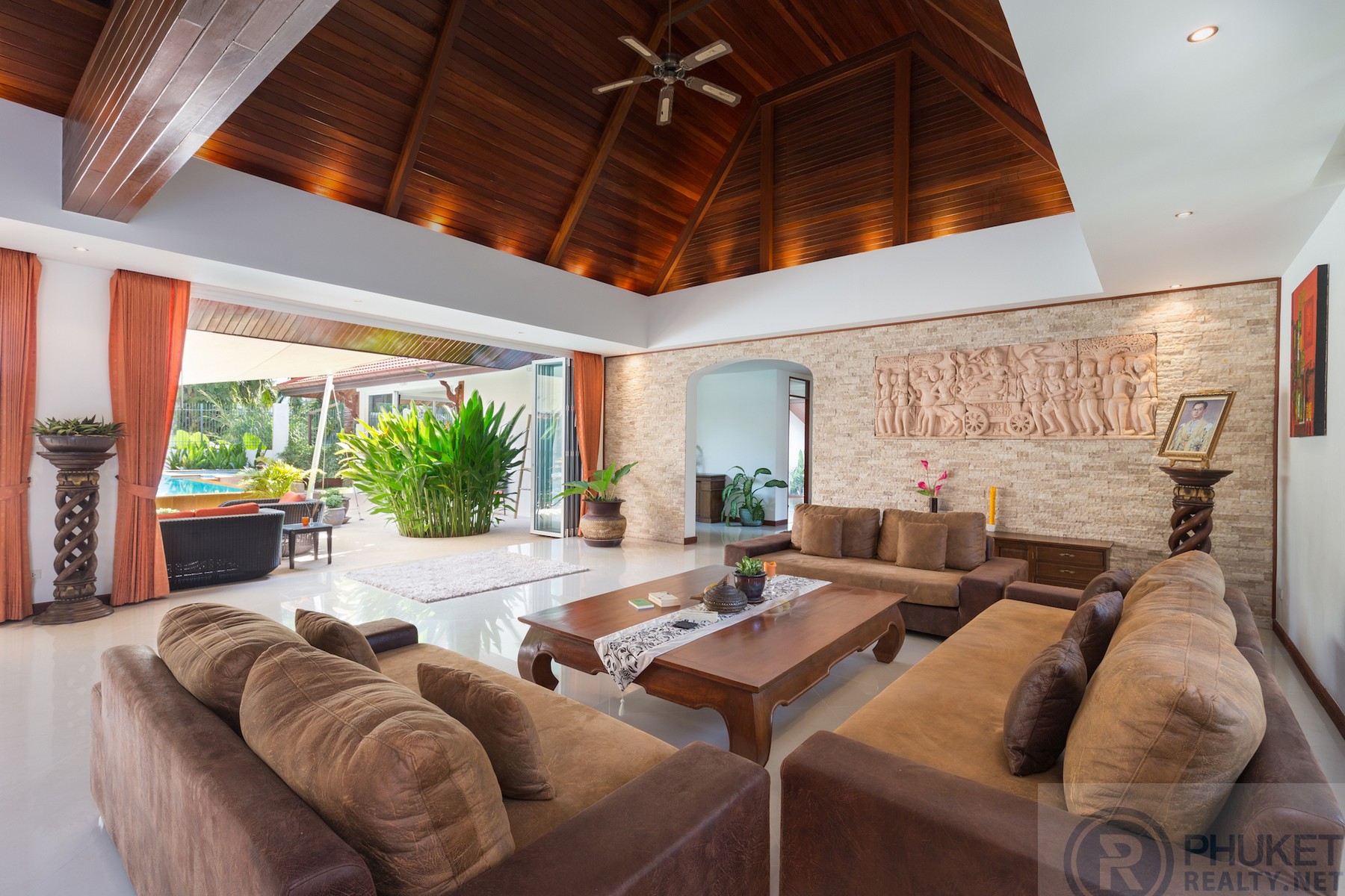 Beautifully maintained and presented U-shaped pool villa fronting onto Kathu Golf Course in the heart of the island. Easily accessible to all parts of the island.The villa is very accessible for International schools, Phuket’s main shopping centres and only 15 minutes to Marinas and Patong.The villa is in a bungalow style with distinctive vaulted Thai style roofing.The spaces in the villa are enormous with large open dining and twin living areas which open directly to the gardens and pool.Currently the villa is configured with 3 large bedrooms with private ensuite bathrooms. However, the design is such that the villa can easily be configured with 5 bedrooms all on the one level.The property is walled by a granite stone high wall which gives privacy and serenity to the villa itself.There is a twin car garage and space for two more cars in the parking area.Materials are all to a high standard, incising teak wood, easy to maintain ceramic tiling in the living areas and top-quality Sun Paradise window systems.The pool is the focus of much of the villa and has a built in jacuzzi at one end with separate massage and dining sala at the font of the villa on the other side of the pool.Currently owned by Thai Freehold of the 1,200 Sq.m land plot and foreign freehold of the villa structure.