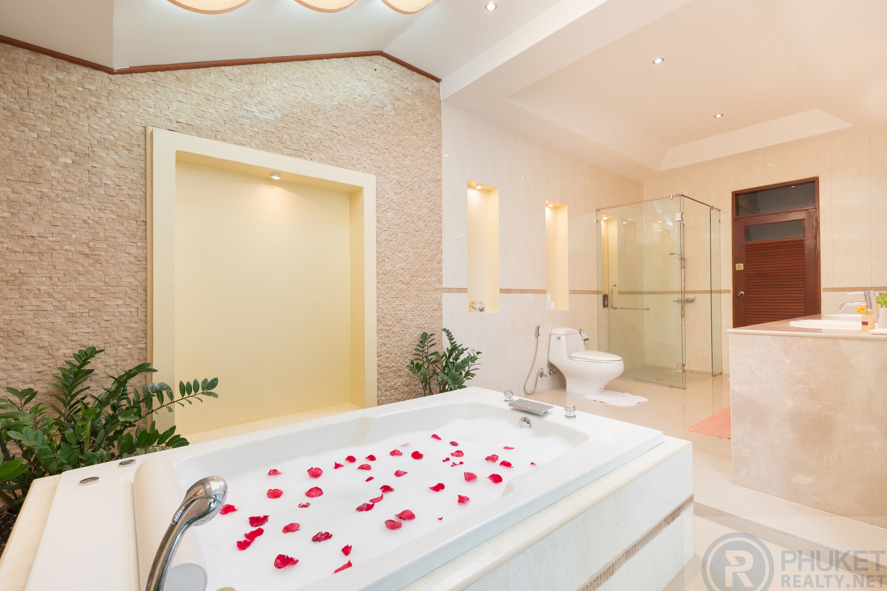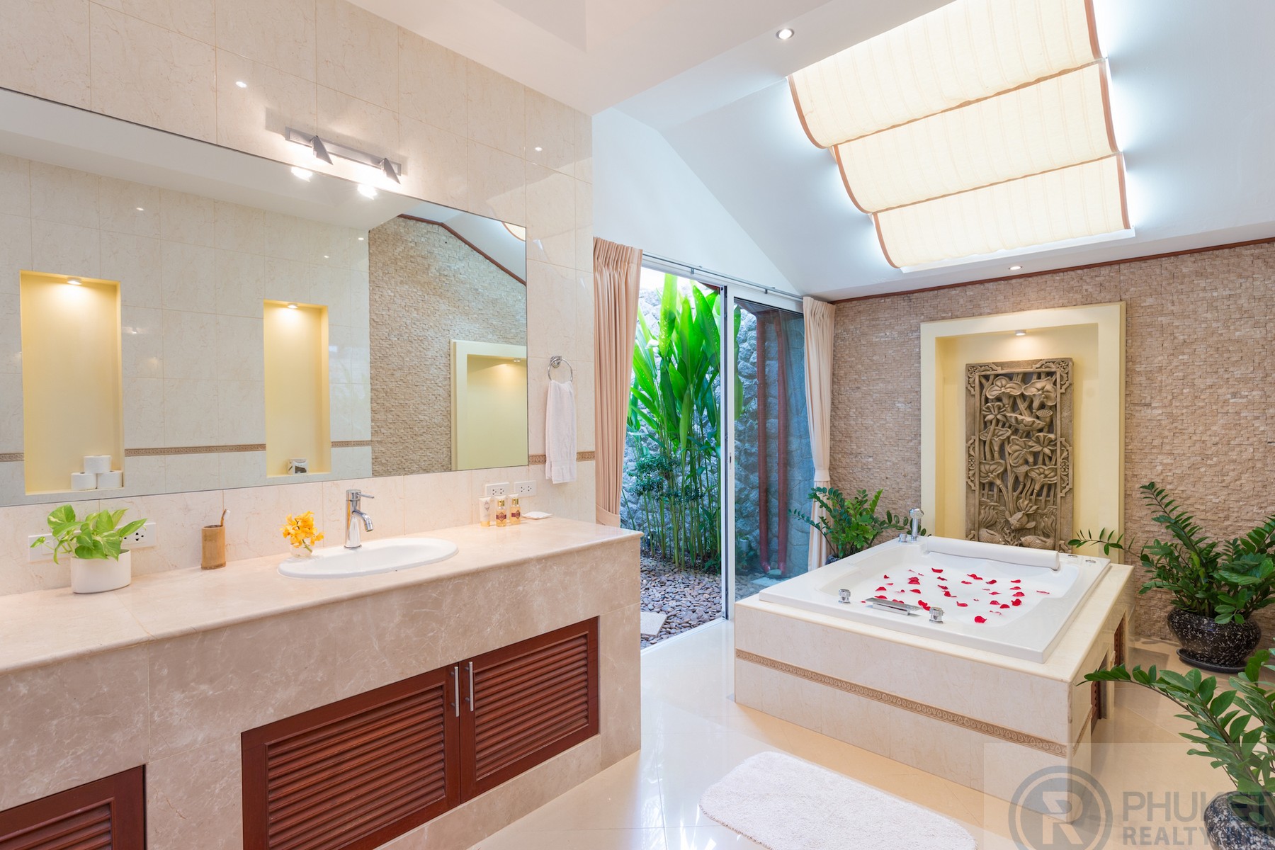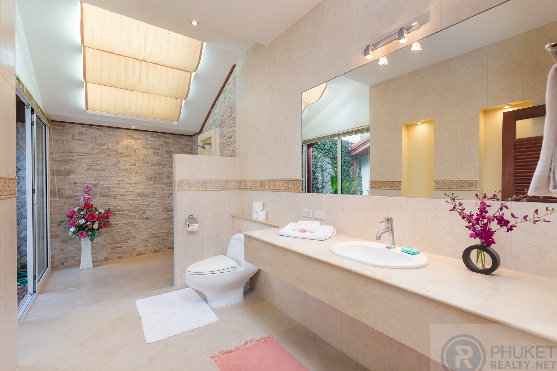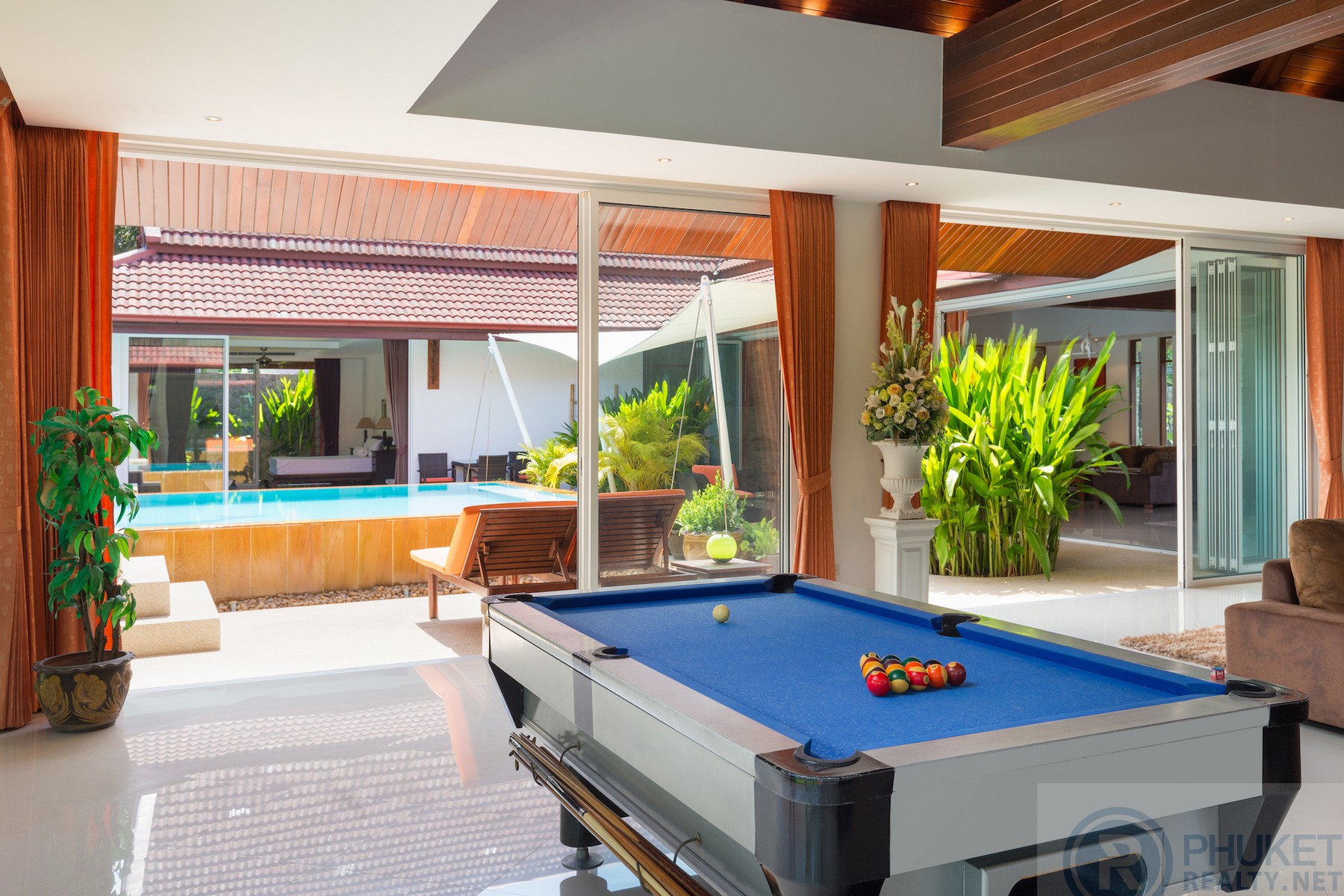 Beautifully maintained and presented U-shaped pool villa fronting onto Kathu Golf Course in the heart of the island. Easily accessible to all parts of the island.The villa is very accessible for International schools, Phuket’s main shopping centres and only 15 minutes to Marinas and Patong.The villa is in a bungalow style with distinctive vaulted Thai style roofing.The spaces in the villa are enormous with large open dining and twin living areas which open directly to the gardens and pool.Currently the villa is configured with 3 large bedrooms with private ensuite bathrooms. However, the design is such that the villa can easily be configured with 5 bedrooms all on the one level.The property is walled by a granite stone high wall which gives privacy and serenity to the villa itself.There is a twin car garage and space for two more cars in the parking area.Materials are all to a high standard, incising teak wood, easy to maintain ceramic tiling in the living areas and top-quality Sun Paradise window systems.The pool is the focus of much of the villa and has a built in jacuzzi at one end with separate massage and dining sala at the font of the villa on the other side of the pool.Currently owned by Thai Freehold of the 1,200 Sq.m land plot and foreign freehold of the villa structure.