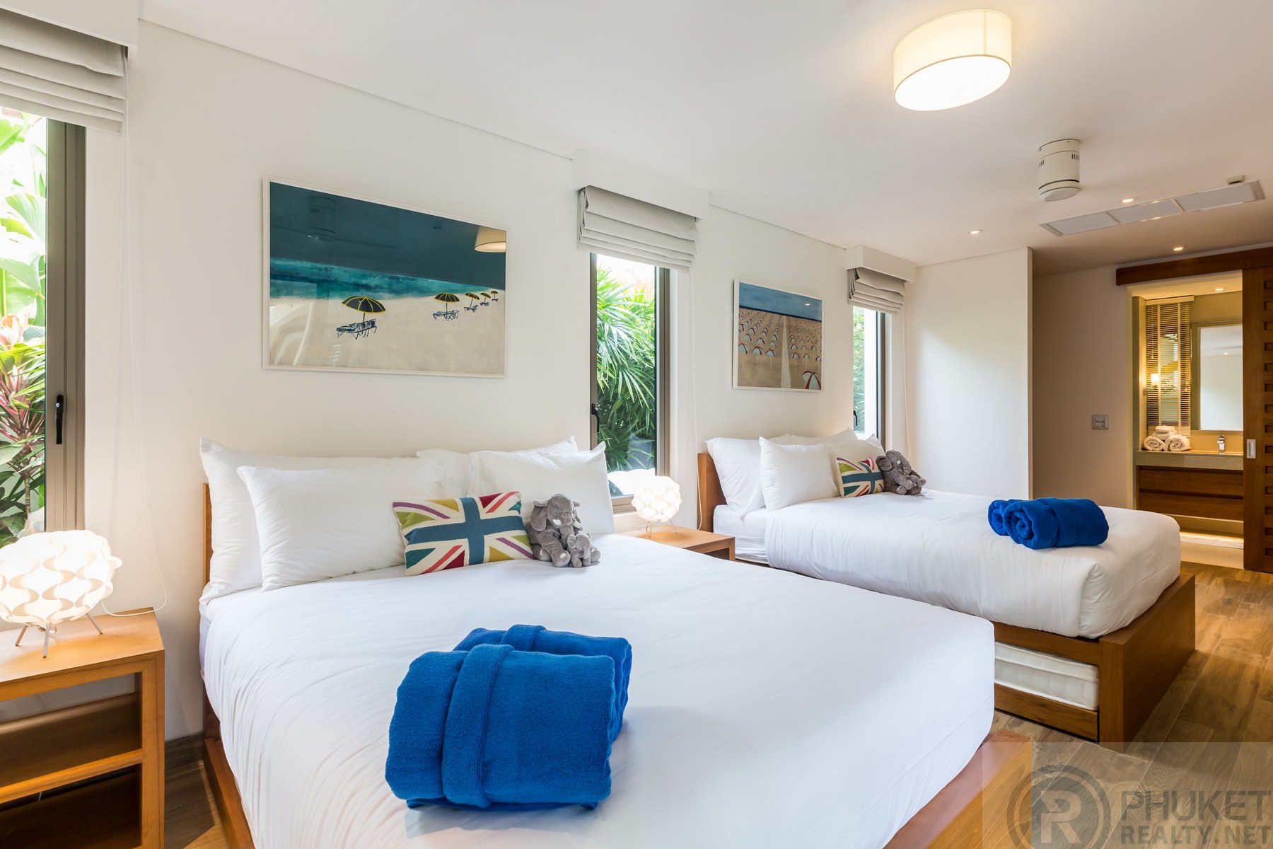 The beautiful four-bedroom pool villa completely renovated is an oasis of calm that exudes tranquility. It is in the exclusive Sai Taan estate which is nestled alongside the five stars Laguna Phuket Resort Complex on Phuket's glamorous West coast. The Villa effortlessly blends comfort and elegance. The minimalist contemporary design with vaulted ceilings creates an atmosphere that is relaxing and serene, creating an instant feeling of Zen-like calm. The Villa can comfortably accommodate up to twelve people, making it the perfect vacation home for couples, families or groups of friends. The Villa is ideally located within a few minute drive of several stunning beaches, including Surin, Bang Tao and Layan. Laguna also boasts several excellent restaurants and amenities. The Villa is also only several minutes’ drive from some of Thailand's (and indeed Asia's) most famous Beach clubs. As you enter The Villa through carved teak doors, you enter an oasis of calm. The calming sound of a fountain splashing into the shimmering pool is the only sound that breaks the calmness. The expansive outdoor area includes a lush garden with a gorgeous sala, perfect for relaxing in the shade. The pool loungers and the outdoor dining furniture are contemporary and stylish, in keeping with the minimalist contemporary feel of the villa. There is also a stainless-steel BBQ for poolside BBQs, and a stylish covered bar by the pool, perfect for cocktails. The kitchen is fully equipped. The dining table is the epitome of contemporary sophistication with pendant lamp lighting hanging above the 8-person table for an optimal dining experience. The living room has sumptuous seating for up to 8, great for lounging and watching a film on screen TV or browsing through the extensive music library, which is connected to indoor and outdoor speakers. As a privately-owned villa in a 24-hour gated community, this Villa allows you unlimited relaxation and safety, while still being within reach of the attractions of one of Asia most sought after holiday destinations.