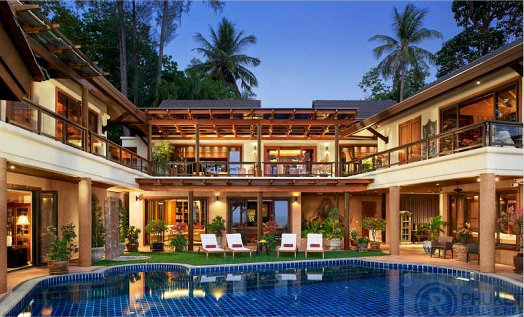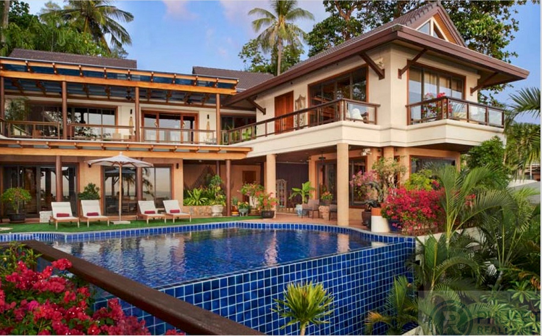 https://my.matterport.com/show/?m=MgjVBVgXfXVThis beautiful luxury ocean front villa is ideally located within an upscale private development only a few minutes’ walk from two of Phuket’s premier white sand beaches, Kata and Kata Noi.The villa enjoys uninterrupted 180-degree panoramic ocean views. Spacious airy living space of this 4 bedrooms villa blends seamlessly with outdoor area, complete with private infinite-edge swimming pool plus sizable decking, a living sala and large manicured tropical garden with direct ocean access.Slender teak wooden beams shade a lush vertical orchid garden at the entrance of Baan Kata Villa B6. Surrounded by tropical beauty, large marble steps lead over a pond filled with water plants and graced by a small waterfall duct that welcome guests to the front door.This unique U-shaped villa has two main floors, the upper level consists of the master bedroom, then dining/living room and then the 2 guest rooms on the opposite side of the ‘U’. The lower level below master bedroom is the entertainment room, outdoor dining area, then followed by office/library. On the left side another study/office/bedroom and a delightful outdoor sala lounge which is next to the stone waterfall and the private walkway to the sea.The spacious dining room has a 10-seat marble top and wooden trim dining table and upholstered velvet chair seats with wooden frames. Past this room, is the marble foyer with beautiful wooden panels painted by a famous Thai artist which connects to the living room. Looking out dining room glass doors toward the wood decking and the entrance pond adorned with water plants and mini waterfall.The gorgeous teak paneled living room has custom painted wooden panels from Thai artist that border the entrance foyer and dining room in background. This inviting living area has two large velvet sofas and two side chairs surrounding a wooden coffee table. The delightful tropical background exudes peace and tranquility with a luscious green garden and granite stone mini waterfall pouring water into the entrance orchid pond area. Each corner of the living room also has built-in bookshelves/cabinets as viewed on left of one of the art panels. The roomy study/office living area on lower level with an en-suite marble bathroom with shower which can turn into an extra bedroom, has 2 walls of all glass sliding doors and screens in order to fully enjoy the sea and Kata Noi beach views. Adjacent to this room is a delightful outdoor lounge/dining area with the sala lounge on columns overlooking the terraced gardens to sea. From this lounge/dining area is a tiled staircase, which leads down to tropical terraced gardens, tile decking & granite stone waterfall which continues further down to a private walkway to the sea.This private and secure villa occupies an excellent location just minutes from this and the bustling village atmosphere of Kata. Great shopping, with everything from boutiques to street-side markets, and some of the best restaurants in Phuket easily within walking distance.This villa is offered at USD 6.8m, converted to Thai Baht for local marketing purposes.