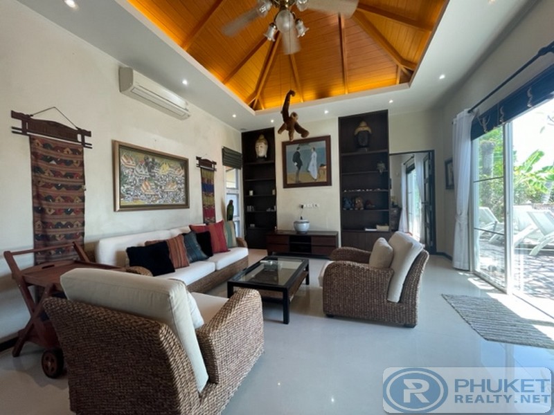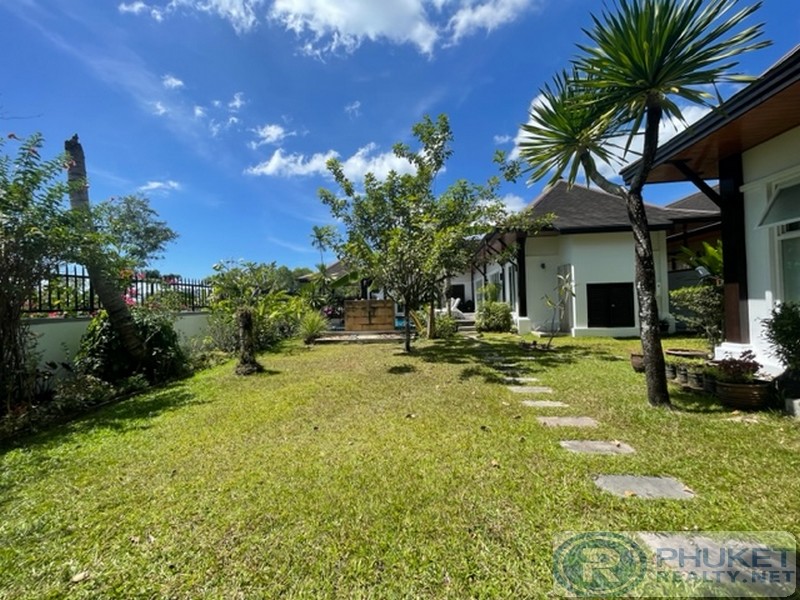 FOR Rent : 3 BEDROOM POOL VILLA, good sized of land 620sqm plot not much around for the size of land overlooks the mountains The villa has a contemporary design with a Thai-Balinese, it is single storey with a living area of 281sqm, corner plot in a gated community with 15 villas.PROPERTY FEATURES:3 bedrooms with ensuite bathrooms, Laundry room + Storage room, Open-plan living, dining and kitchen area, Private swimming pool 8mx3mx1.6m Pool deck with sun chairs Outdoor shower by the pool Covered sala with seating area, Private garden, Laundry room, Storage room, Covered carport for 2 cars ,Gated community with guardsLOCATION:Perfectly located in a secure and quiet gated community located at Layan Phuket, close to the beach and shopping areas can be reached in just a 5-8 min drive. 5 min to Layan beach7 min to Bangtao beach 7 min to Boat avenue and Porto de Phuket (shopping areas) 7 min to Laguna golf 20 min to Phuket airport